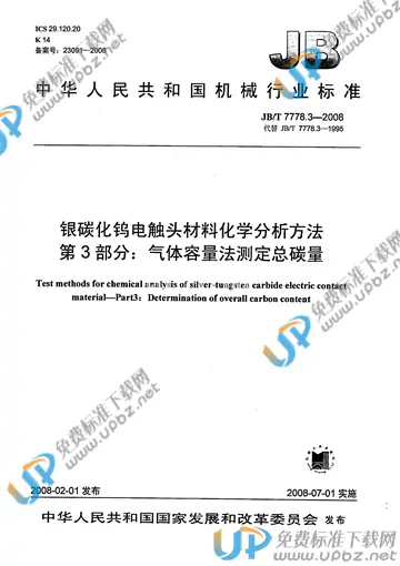 JB/T 7778.3-2008 银碳化钨电触头材料化学分析方法 第3部分:气体容量法测定总碳量