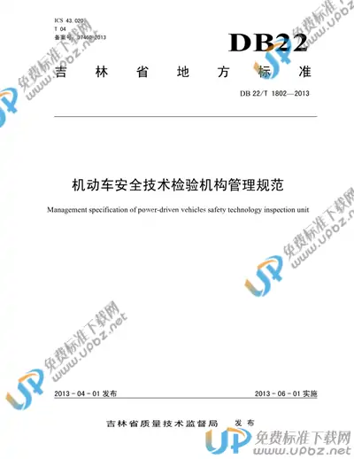 DB22/T1803-2013机动车安全技术检验机构服务规范DB4103/T130—2021机动车安全技术检验机构服务规范DB22/T2506-2016机动车安全技术检验机构检测设备管理规范机动车安全技术检验机构检测设备期间核查规范DB22/T2043-2014机动车安全技术检验机构仪器设备期间核查规范DB65/T3647-2014机动车安全技术检验机构检验资格许可现场核查规范DB50/T853-2018机动车安全技术检验机构分类管理等级划分与评定DB3702/T0005-2021机动车检验机构经营服务规范DB22/T2042-2014机动车安全技术检验机构检测结果质量控制规范DB23/T3012—2021机动车安全技术检验机构检测结果质量控制规范