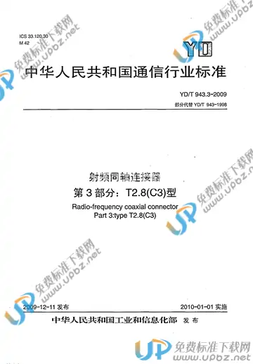 - 标准名称:射频同轴连接器 第3部分:T2.8(C3)型