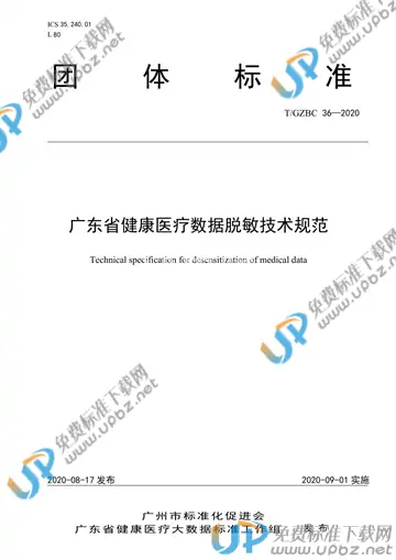 T/GZBC 36-2020 广东省健康医疗数据脱敏技术规范