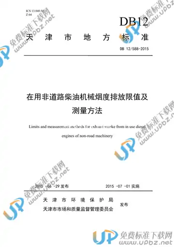 DB12/ 588-2015 在用非道路柴油机械烟度排放限值及测量方法