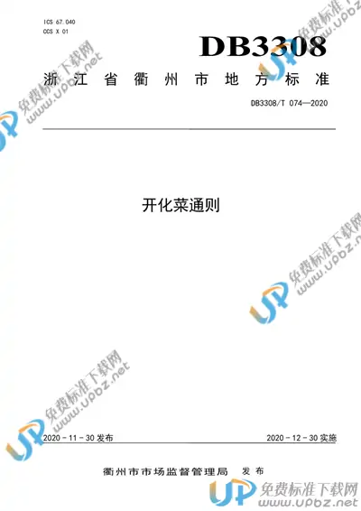 地方标准《开化菜通则》由衢州市文化广电旅游局归口上报,主管部门为衢州市市场监督管理局。