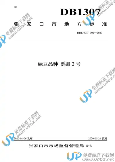 DB1307/T 302-2020 绿豆品种 鹦哥2号