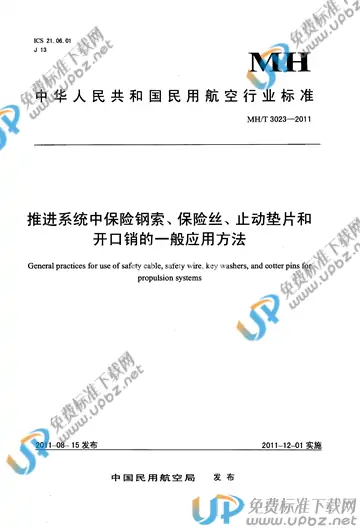 行业标准《推进系统中保险钢索、保险丝、制动垫片和开口销的一般应用方法》由中国民航科学技术研究院归口上报,主管部门为中国民用航空局。本标准规定了推进系统中使用保险钢索、保险丝、止动垫片和开口销给紧固件打保险的方法。本标准适用于推进系统中使用保险钢索、保险丝、止动垫片和开口销给紧固件打保险。