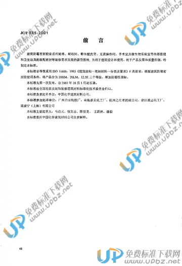 JC/T 885-2001 建筑用防毒密封胶