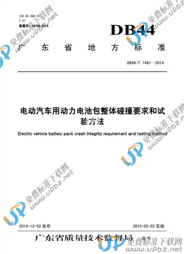 DB44/T 1481-2014 电动汽车用动力电池包整体碰撞要求和试验方法