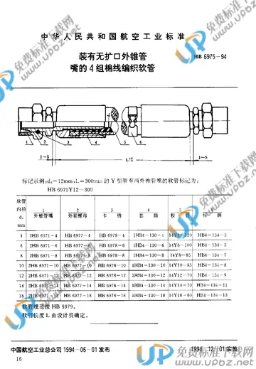 HB 6975-1994 装有无扩口外锥管嘴的4组棉线编织软管