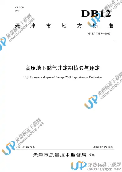 地方标准《高压地下储气井定期检验与评定》由由天津市特种设备监督检验技术研究院提出并归口解释归口上报,主管部门为天津市质量技术监督局。本标准适用于根据SY/T 6535-2002 设计制造、用于盛装符合GB18047 介质的储气井的定期检验与评定工作。本标准中的定期检验形式包括年度检验和全面检验。盛装其他用途及非腐蚀性气体的储气井的检验工作可参考执行。