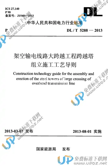 DL/T 5288-2013 架空输电线路大跨越工程跨越塔组立施工工艺导则