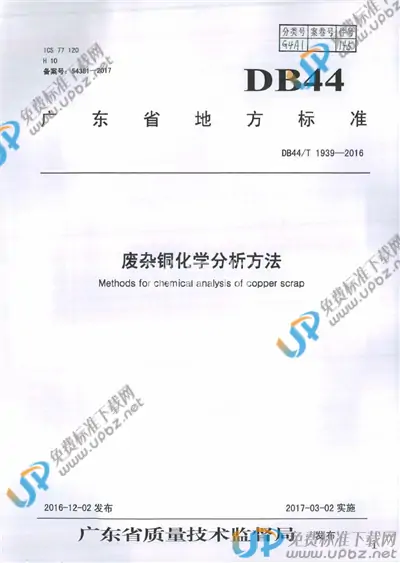 地方标准《废杂铜化学分析方法》由广东省质量技术监督局归口上报,主管部门为广东省质量技术监督局。本方法规定了废杂铜中铜含量测定方法。 本方法适用于废杂铜或由废杂铜冶炼所得的再生铜中铜含量的测定。测定范围:50.0%~99.5%。