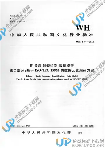 WH/T 44-2012 图书馆—射频识别—数据模型 第2部分:基于ISO/IEC 15962的数据元素编码方案