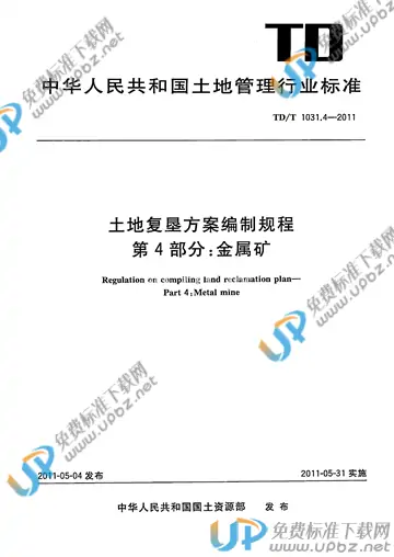 行业标准《土地复垦方案编制规程 第4部分:金属矿》,主管部门为国土资源部。TD/T 1031的本部分规定了金属矿开采损毁土地复垦方案编制的总则、程序、方法、内容和成果要求。 非金属矿山开采损毁土地复垦方案编制可参照本部分执行。