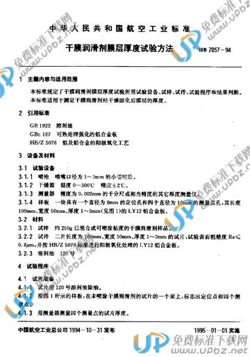 HB 7057-1994 干膜润滑剂膜层厚度试验方法