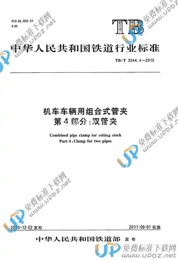 TB/T 3244的本部分规定了固定管外径为Φ6mm~Φ42mm不同规格管子双管夹的结构型式、尺寸、技术要求、试验方法及检验规则和标记等。本部分适用于机车车辆、动车组管路系统用双管夹。城轨车辆用组合式管夹可参照使用。