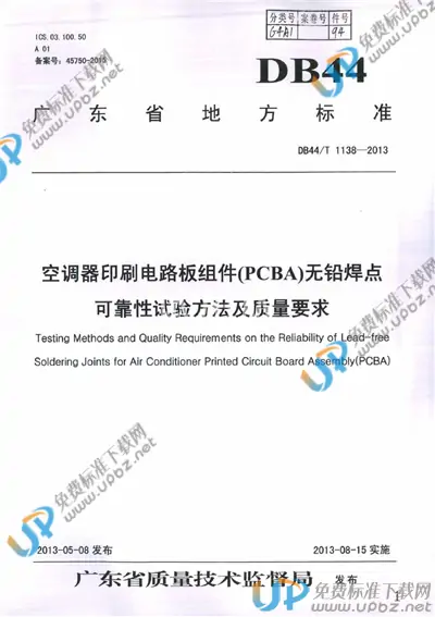 DB44/T 1138-2013 空调器印刷电路板组件(PCBA)无铅焊点可靠性试验方法及质量要求