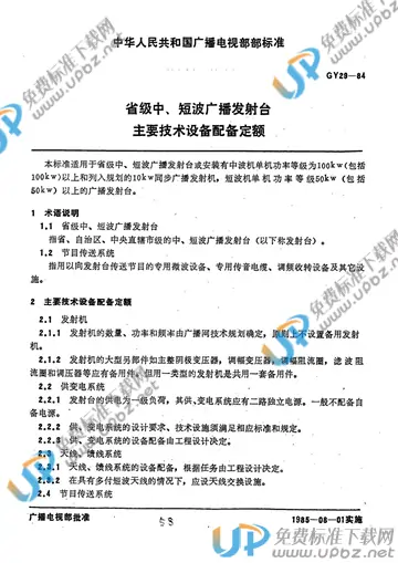 GY 29-1984 省级中、短波广播发射台主要技术设备配备定额