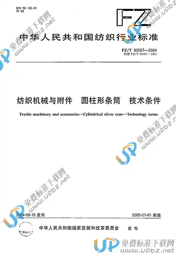 FZ/T 93007-2004 纺织机械与附件 圆柱形条筒 技术条件