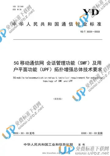 - 标准名称:5G移动通信网 会话管理功能(SMF)及用户平面功能(UPF)拓扑增强总体技术要求