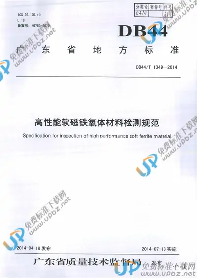 DB44/T 1349-2014 高性能软磁铁氧体材料检测规范