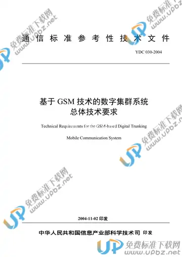 YDC 030-2004 基于gsm技术的数字集群系统总体技术要求
