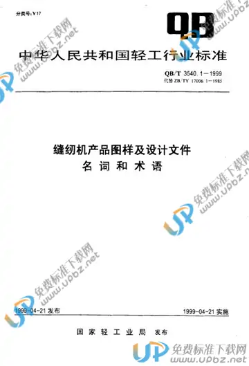 QB/T 3540.1-1999 缝纫机产品图样及设计文件名词和术语