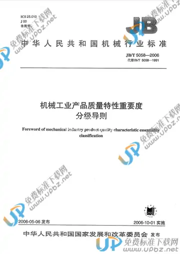 JB/T 5058-2006 机械工业产品质量特性重要度分级导则
