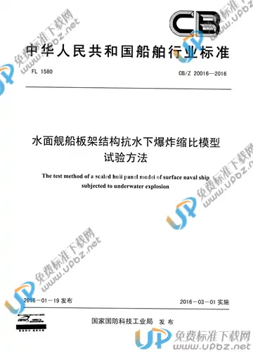 - 标准名称:水面舰船板架结构抗水下爆炸缩比模型试验方法
