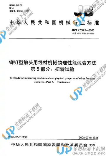 JB/T 7780.5-2008 铆钉型触头用线材机械物理性能试验方法 第5部分:扭转试验