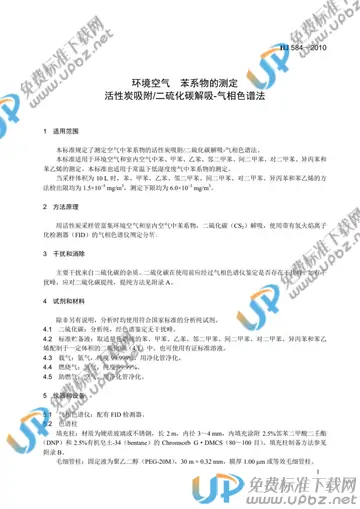 HJ 584-2010 环境空气 苯系物的测定 活性炭吸附/二硫化碳解吸-气相色谱法