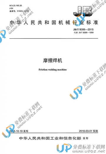 JB/T8086-1995摩擦焊机JB/T8086-1999摩擦焊机SY/T5561-2008摩擦焊接钻杆SY/T6765-2009摩擦焊接加重钻杆惯性摩擦焊工艺方法20182066-T-469惯性摩擦焊工艺方法GB/T37777-2019惯性摩擦焊工艺方法JB/T4251-1999摩擦焊通用技术条件金属材料的旋转摩擦焊20220149-T-469金属材料的旋转摩擦焊