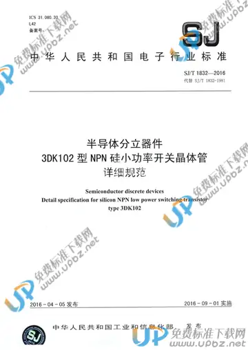SJ/T 1832-2016 半导体分立器件 3DK102型NPN硅小功率开关晶体管详细规范
