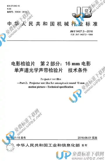 JB/T 9427.2-2016 电影检验片 第2部分:16mm电影单声道光学声带检验片 技术条件