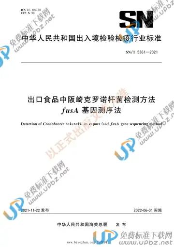 SN/T 5361-2021 出口食品中阪崎克罗诺杆菌检测方法 fusA基因测序法