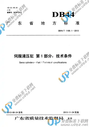 地方标准《伺服液压缸 第1部分:技术条件》由广东省质量技术监督局归口上报,主管部门为广东省质量技术监督局。DB44/T 1169的本部分规定了单、双作用伺服液压缸的技术要求、检验规则、标志、使用说明书、包装、运输和贮存。 本部分适用于以液压油或性能相当的其它矿物油为工作介质的双作用或单作用伺服液压缸。