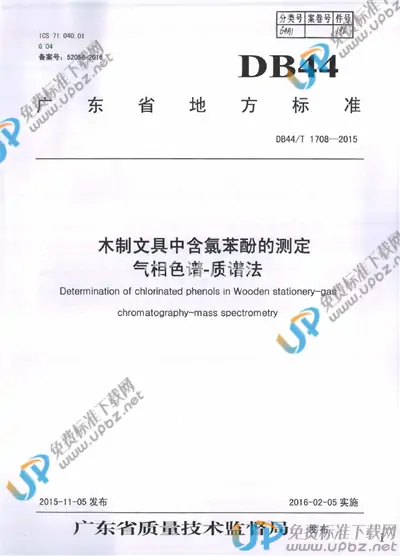 DB44/T 1708-2015 木制文具中含氯苯酚的测定 气相色谱-质谱法