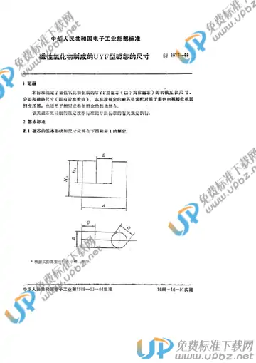 SJ 2873-1988 磁性氧化物制成的uyf型磁芯的尺寸