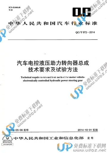 QC/T 972-2014 汽车电控液压助力转向器总成技术要求及试验方法