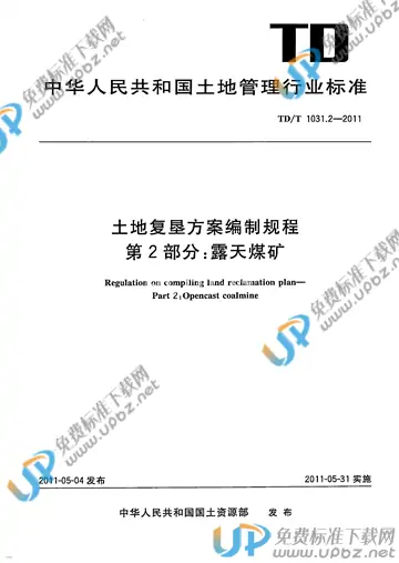 行业标准《土地复垦方案编制规程 第2部分:露天煤矿》,主管部门为国土资源部。TD/T 1031的本部分规定了露天开采煤矿损毁土地复垦方案编制的总则、程序、方法、内容和成果要求。 烧制砖瓦、采石场、采砂场等地表挖掘、压占造成损毁土地的复垦方案编制可参照本部分执行。