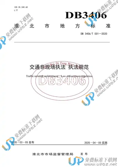 地方标准《交通非现场执法 执法规范》由淮北市交通运输局归口上报,主管部门为淮北市市场监督管理局。