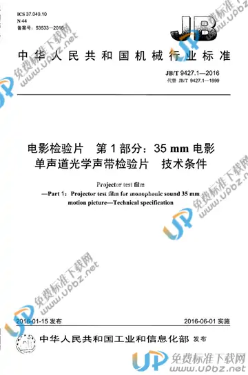 JB/T 9427.1-2016 电影检验片 第1部分: 35mm电影单声道光学声带检验片 技术条件