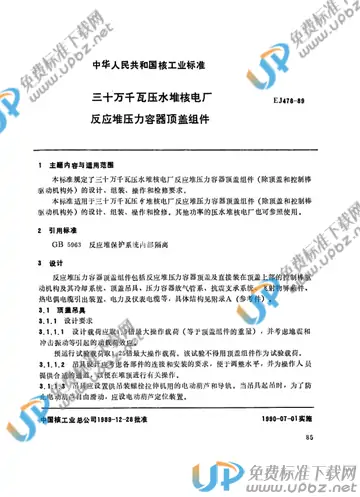 EJ/T 478-1989 三十万千瓦压水堆核电厂.反应堆压力容器顶盖组件