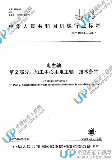 行业标准《电主轴 第2部分:加工中心用电主轴 技术条件》由全国金属切削机床标准化技术委员会归口上报,主管部门为国家发展和改革委员会。JB/T 10801 的本部分规定了加工中心用电主轴设计、制造和验收的基本要求。 本部分适用于加工中心用电主轴(以下简称电主轴)。