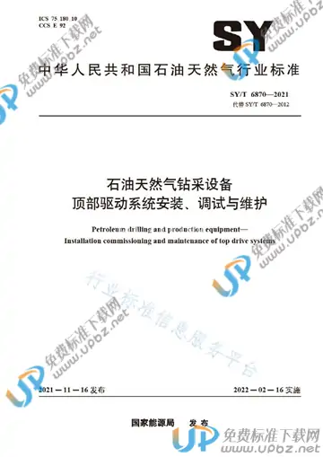 行业标准《石油天然气钻采设备 顶部驱动系统安装、调试与维护》,主管部门为国家能源局。