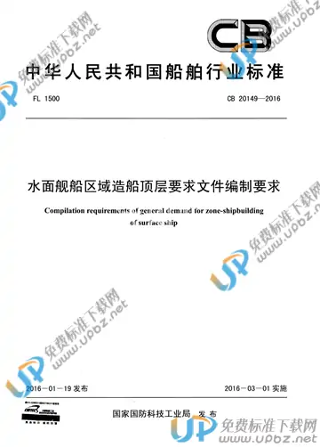 - 标准名称:水面舰船区域造船顶层要求文件编制要求