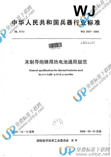 WJ 2657-2005 末制导炮弹用热电池通用规范