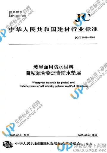 JC/T 1068-2008 坡屋面用防水材料 自粘聚合物沥青防水垫层