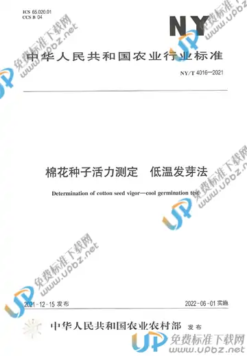 NY/T 4016-2021 棉花种子活力测定 低温发芽法
