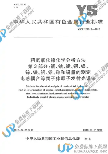 YS/T 1229.3-2018 粗氢氧化镍化学分析方法 第3部分:铜、钴、锰、钙、镁、锌、铁、铝、铅、砷和镉量的测定 电感耦合等离子体原子发射光谱法