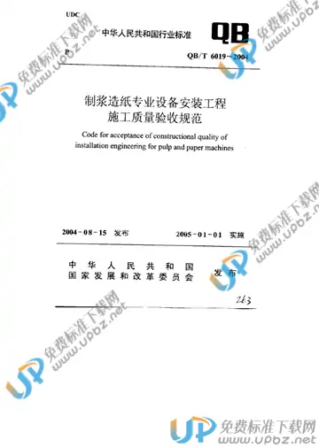 QB/T 6019-2004(条文说明) 制浆造纸专业设备安装工程施工质量验收规范(条文说明)