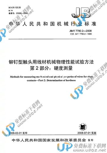 JB/T 7780.2-2008 铆钉型触头用线材机械物理性能试验方法 第2部分:硬度测量